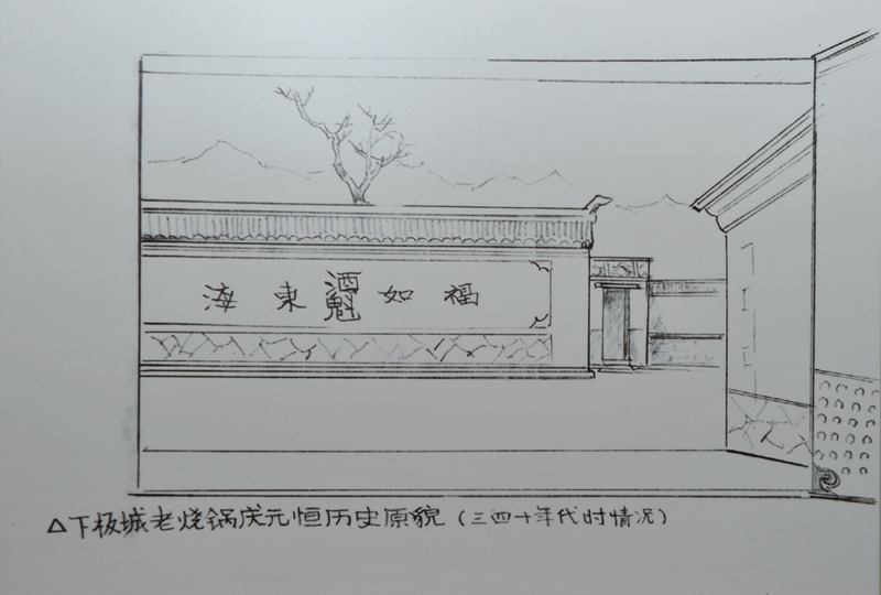 關(guān)闊去日本時(shí),發(fā)現(xiàn)了日本專門研究承德的學(xué)者伊東佑信先生早年在承德畫的速寫里,有兩幅1940年前后的下板城老燒鍋慶元亨的實(shí)景記錄,非常真實(shí)。
