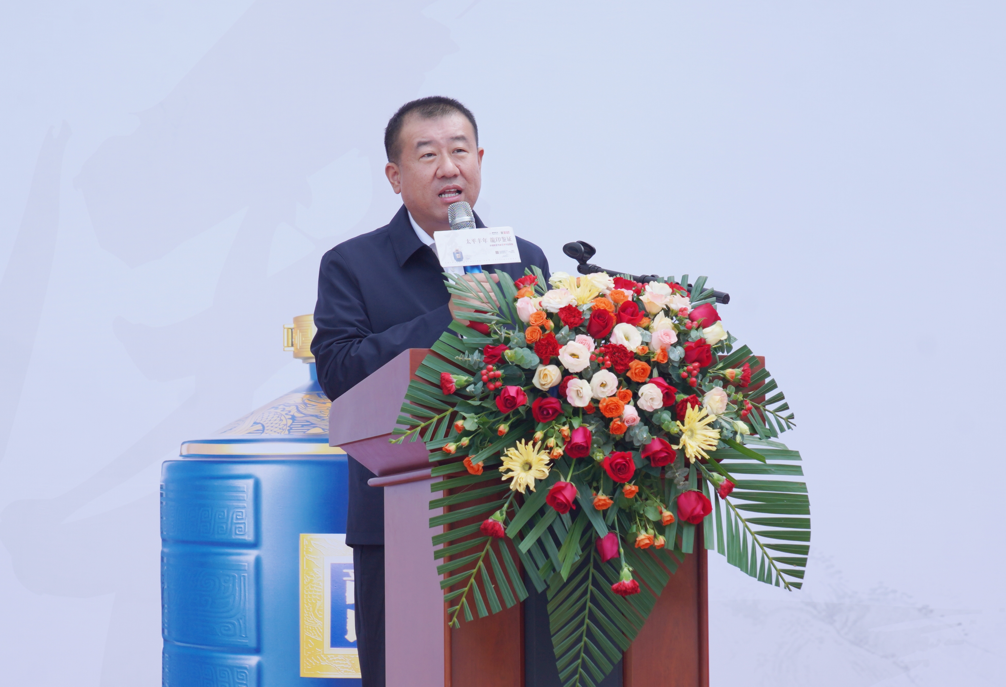 板城酒業(yè)黨委書記、總經理張春生發(fā)表講話,書畫藝術歷史悠久,源遠流長,是中華民族的文化瑰寶,在弘揚民族精神,振興民族文化和滿足人民群眾日益增長的精神文化需求方面發(fā)揮著重要作用。