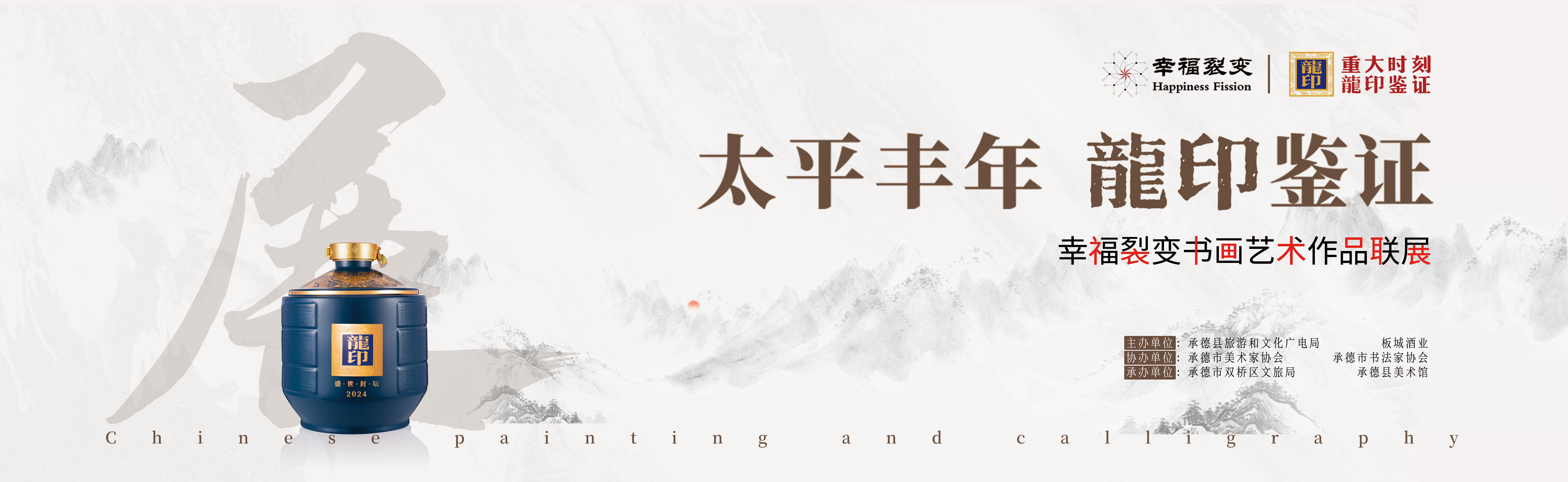 太平豐年,龍印鑒證;9月19日,由承德縣旅游和文化廣電局、板城酒業(yè)主辦;承德市美術家協(xié)會、承德市書法家協(xié)會協(xié)辦;承德市雙橋區(qū)旅游和文化局、承德縣文化館承辦的“太平豐年龍印鑒證——幸福裂變書畫藝術作品聯展”活動盛大開幕。