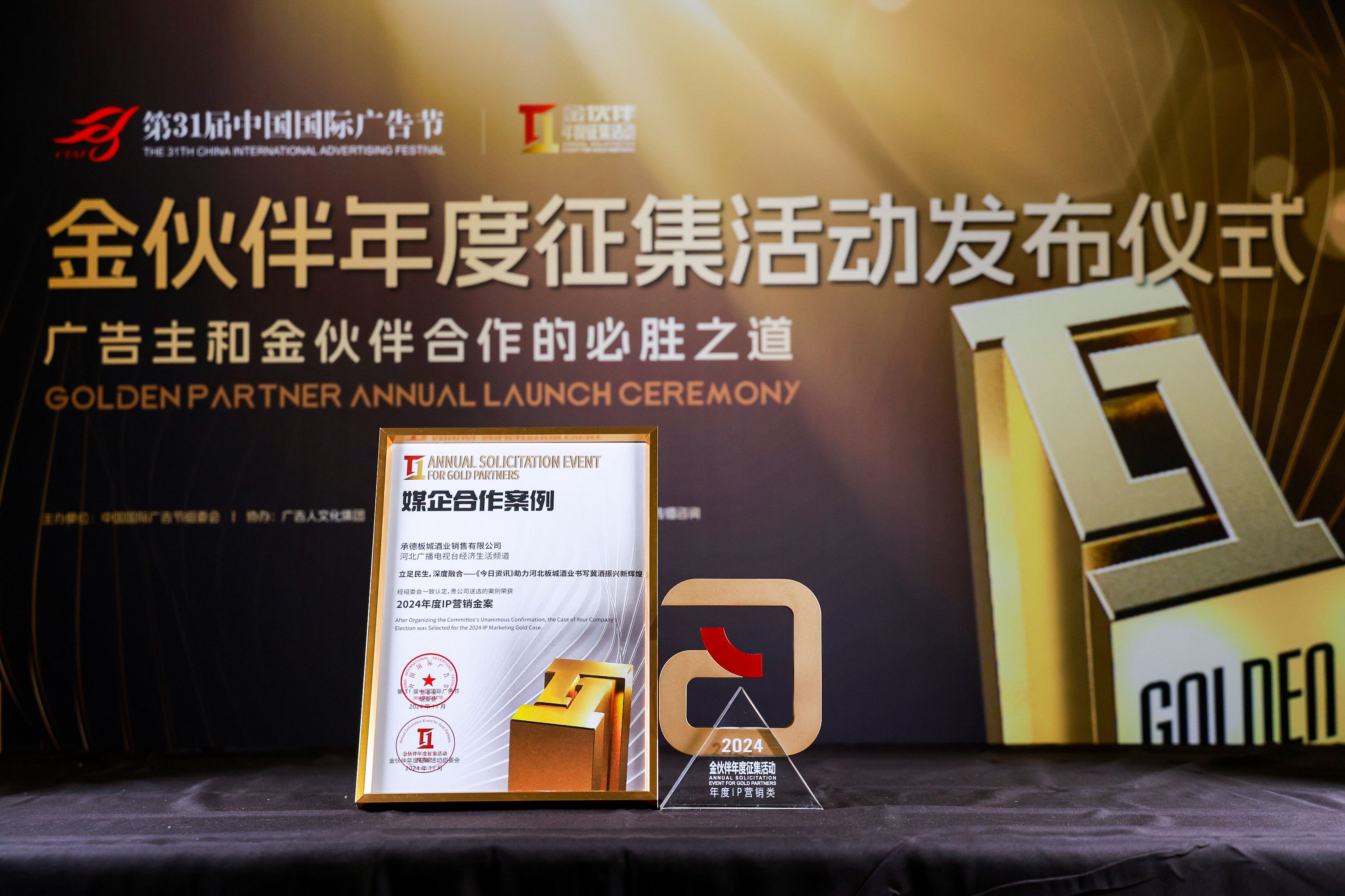 板城酒業(yè)與河北經(jīng)濟(jì)生活頻道合作案例【立足民生,深度融合《今日資訊》助力板城酒業(yè)書寫冀酒振興新輝煌】入選31屆中國國際廣告節(jié)·2024廣告主金伙伴年度征集發(fā)布儀式·媒企合作案例·年度IP營銷金案;