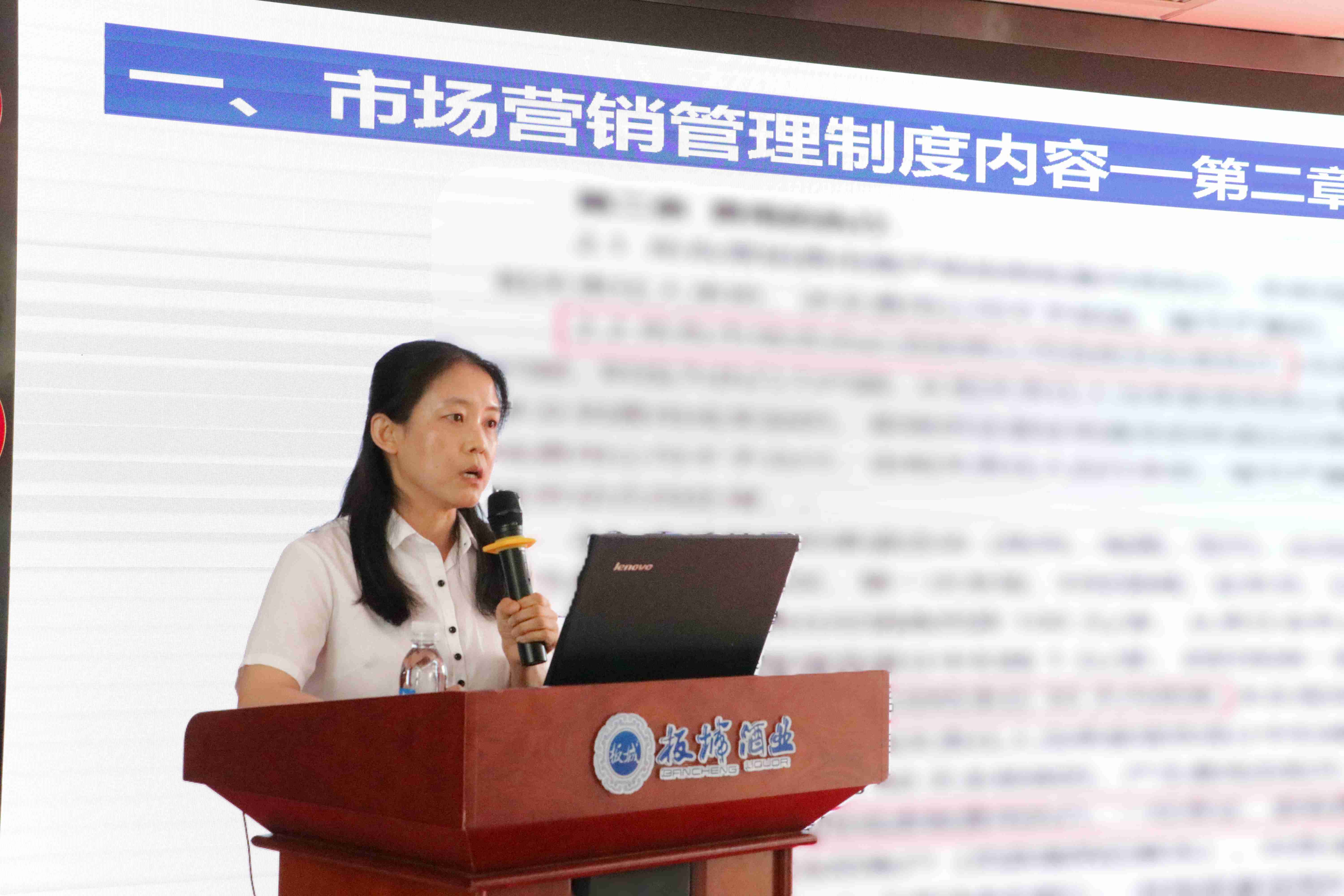板城酒業(yè)營銷管理部主管金百靈講解公司規(guī)章制度,督促大家共同營造風(fēng)清氣正的工作氛圍,提升公司資源的投入效能,建立良性有序的市場秩序,堅(jiān)決保障公司戰(zhàn)略有效落地。