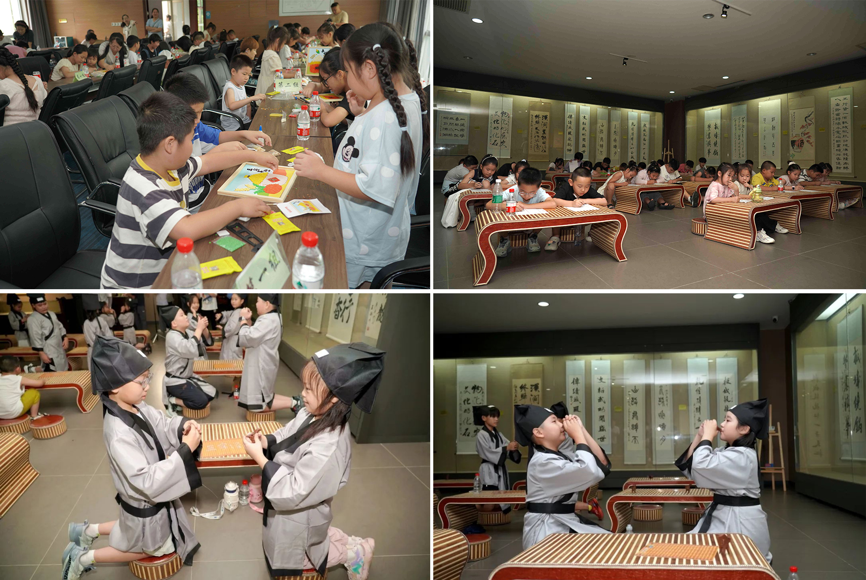 實踐點燃創(chuàng)造火花。在多媒體廳,孩子們巧手拼貼五谷雜糧,創(chuàng)作寓意深遠(yuǎn)的糧畫作品,于指尖再次感悟“粒粒皆辛苦”。字畫廳則化作文雅殿堂,孩子們在導(dǎo)師引領(lǐng)下,研習(xí)傳統(tǒng)酒禮中的賓主之道、長幼之序與君子之風(fēng),舉手投足間傳承著文明的儀軌。