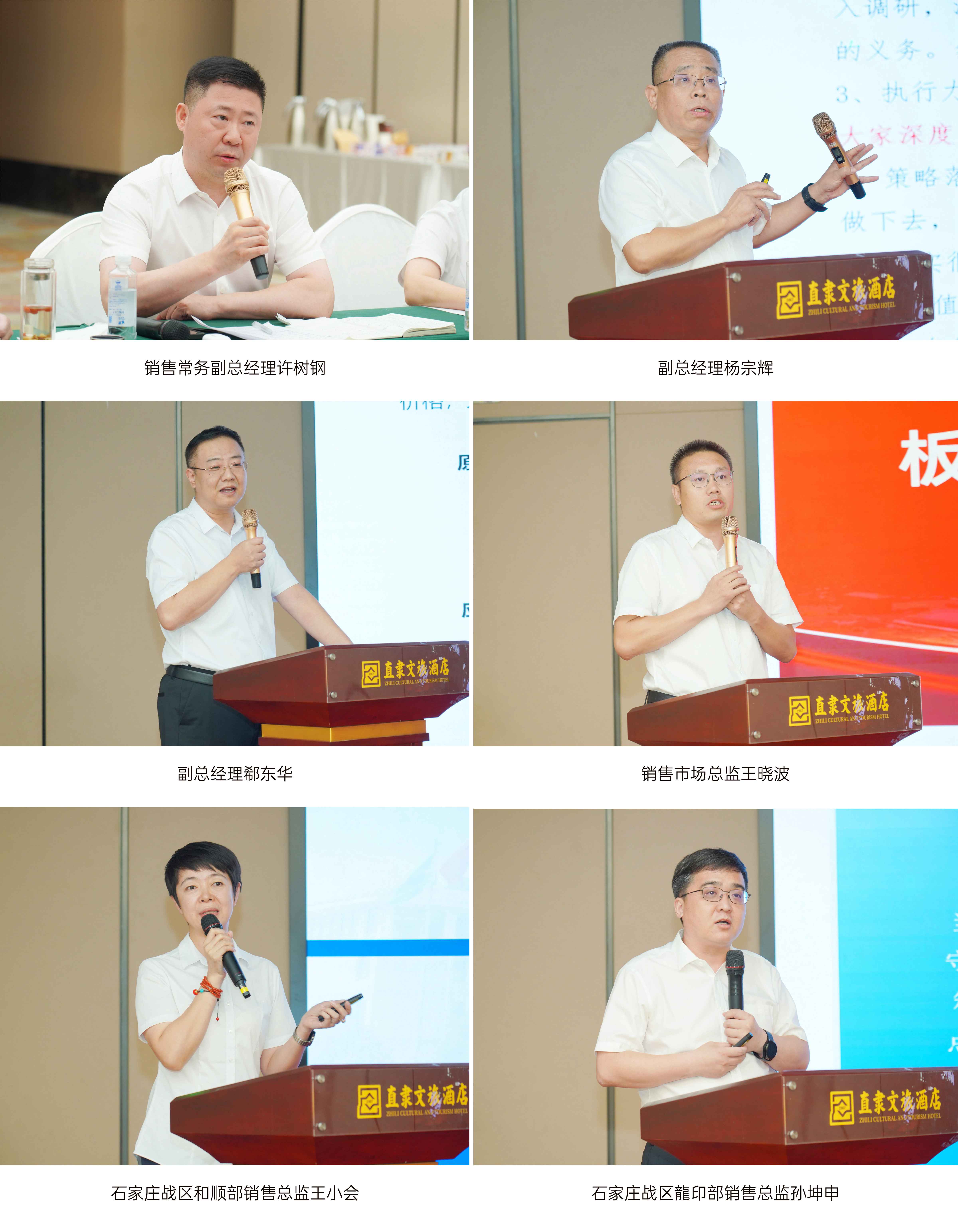 銷售常務(wù)副總經(jīng)理許樹鋼、副總經(jīng)理?xiàng)钭谳x、副總經(jīng)理郗東華、銷售市場總監(jiān)王曉波、石家莊戰(zhàn)區(qū)和順部銷售總監(jiān)王小會、石家莊戰(zhàn)區(qū)龍印部銷售總監(jiān)孫坤申等領(lǐng)導(dǎo)分別針對分管區(qū)域進(jìn)行全面分析與解答,并提出了相關(guān)營銷策略與戰(zhàn)術(shù)。