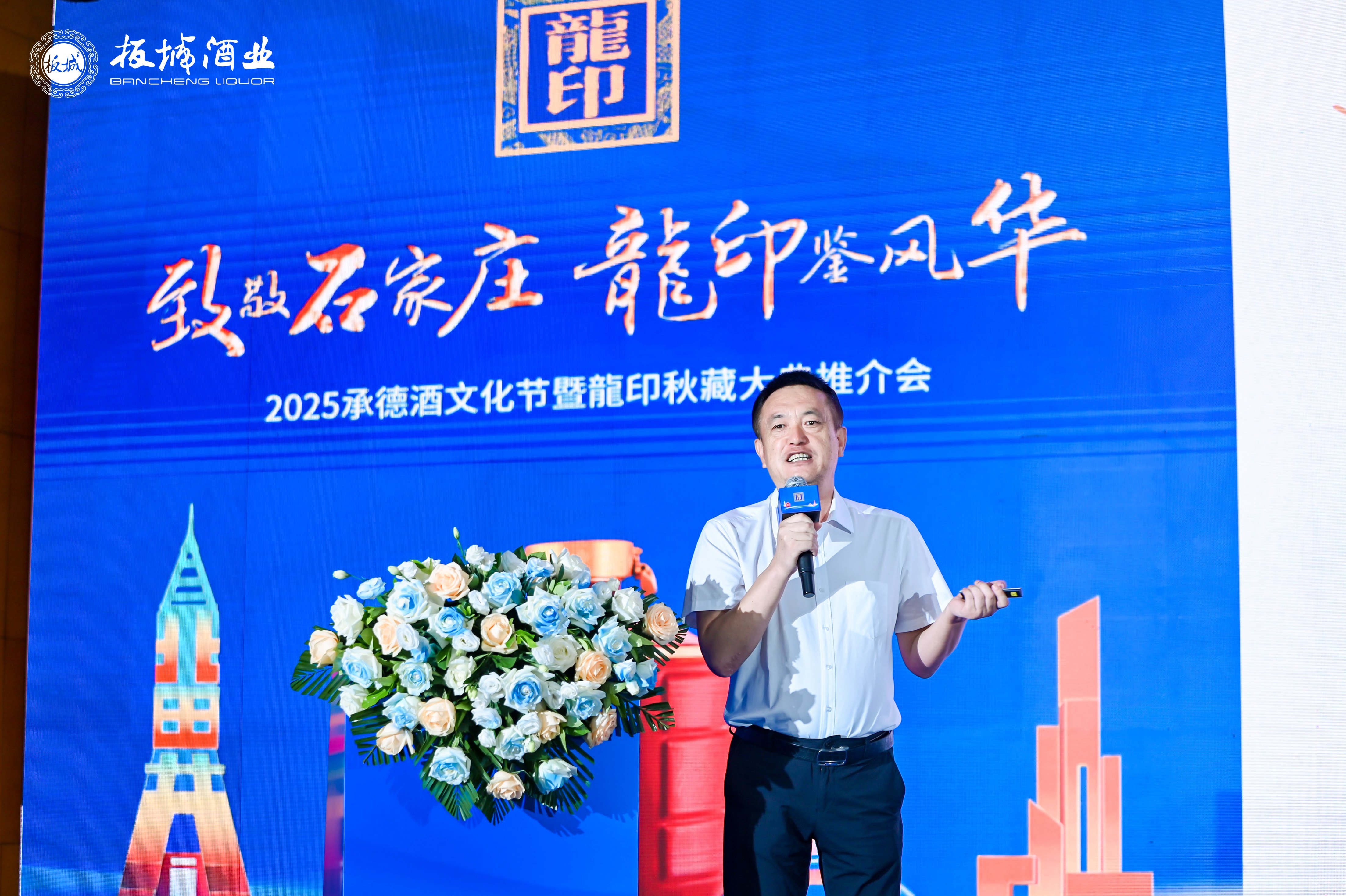 歐式長桌宴+中式待客禮,板城酒業(yè)石家莊戰(zhàn)區(qū)龍印部銷售總監(jiān)孫坤申與石家莊龍印部業(yè)務經(jīng)理共同登臺祝酒。