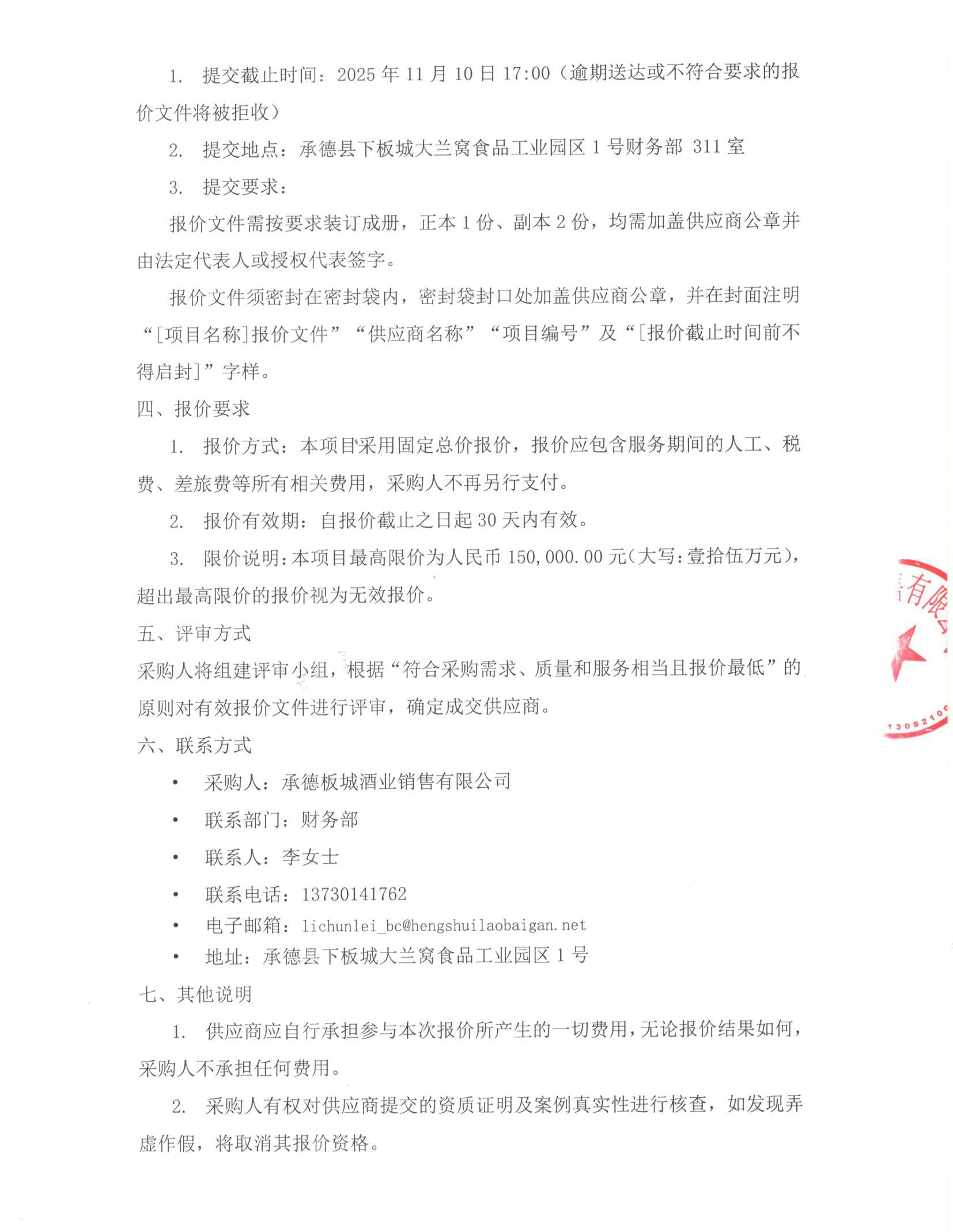 承德板城酒業(yè)銷售有限公司一般稅務(wù)咨詢服務(wù)項(xiàng)目密封報(bào)價(jià)公告