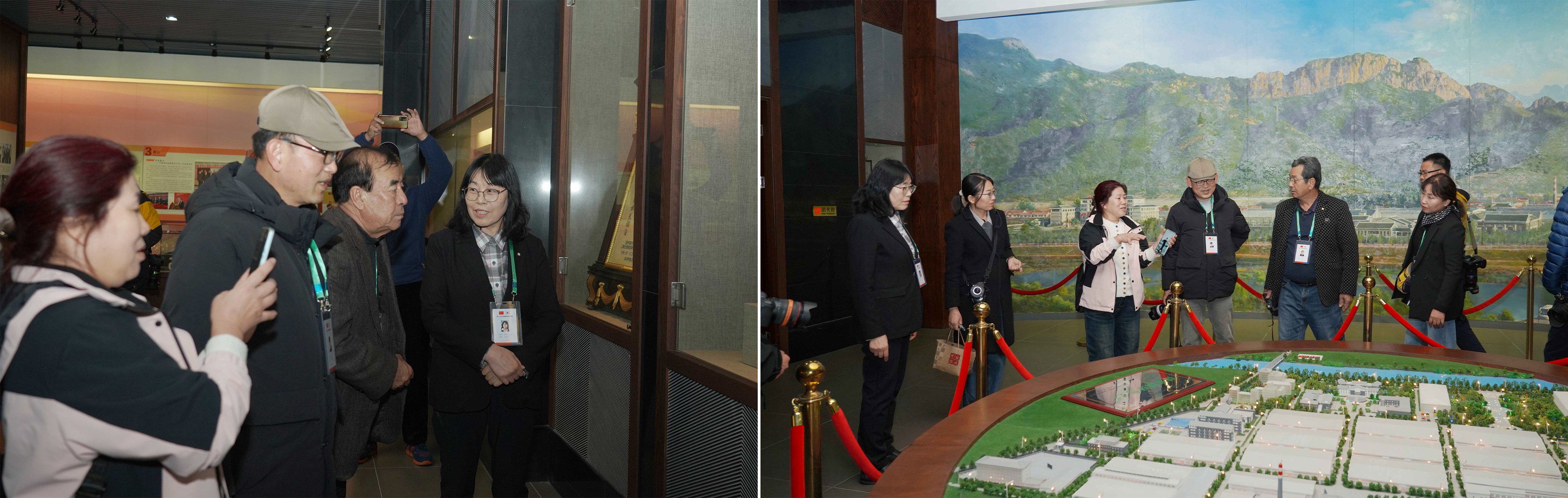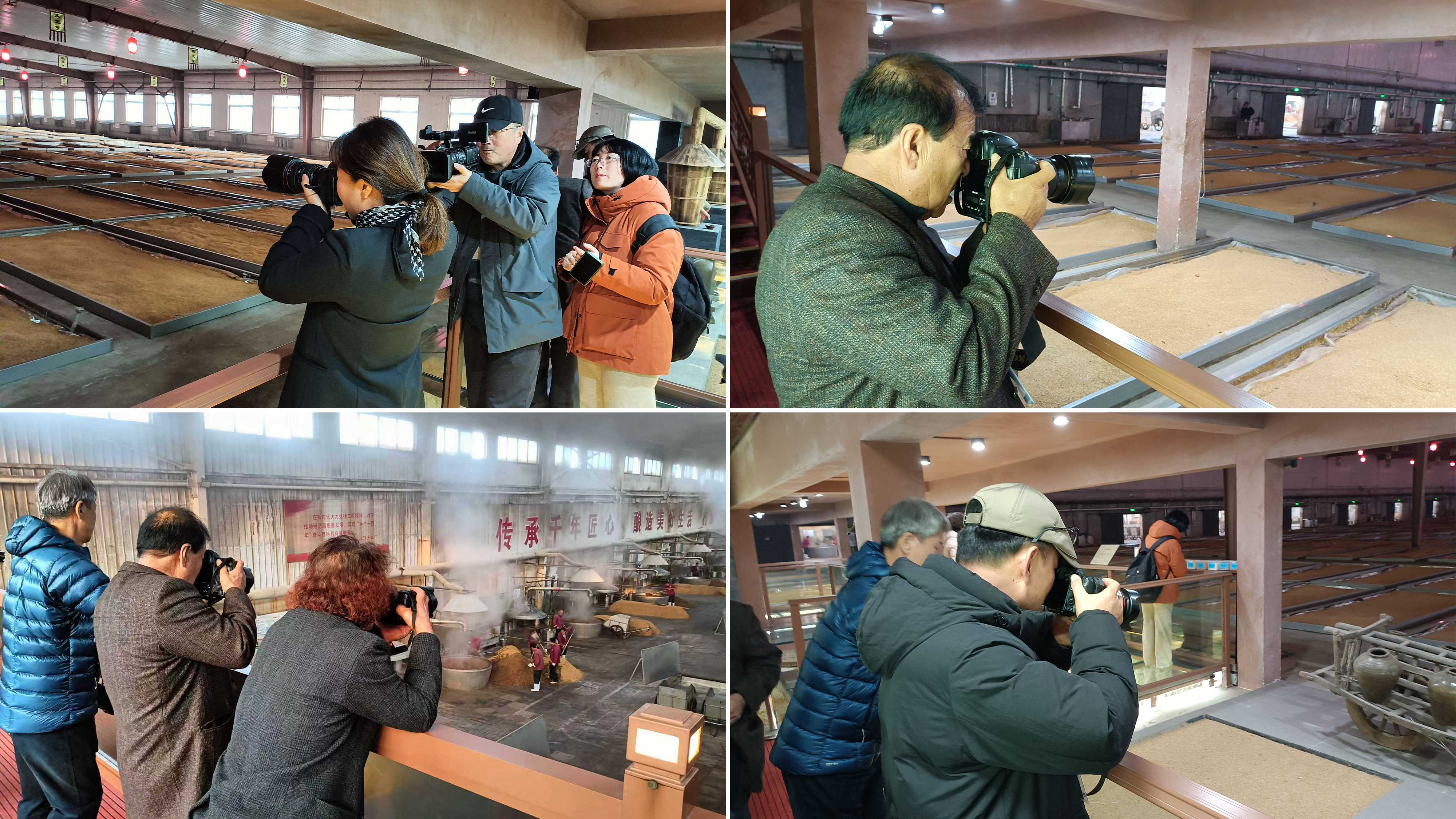 隨后,中韓攝影家們先后參觀了板城燒鍋酒博物館與生產(chǎn)廠區(qū),深入了解了從選糧、發(fā)酵、蒸餾到陳釀的全流程工藝。攝影家們穿梭于古樸的窖池與現(xiàn)代生產(chǎn)線之間,不斷按下快門,記錄下工人勞作的身影、蒸汽氤氳的車間場景,以及充滿歲月痕跡的酒器文物。光影交錯間,北方白酒釀造的文化底蘊(yùn)與工業(yè)美學(xué)被一一凝固定格。