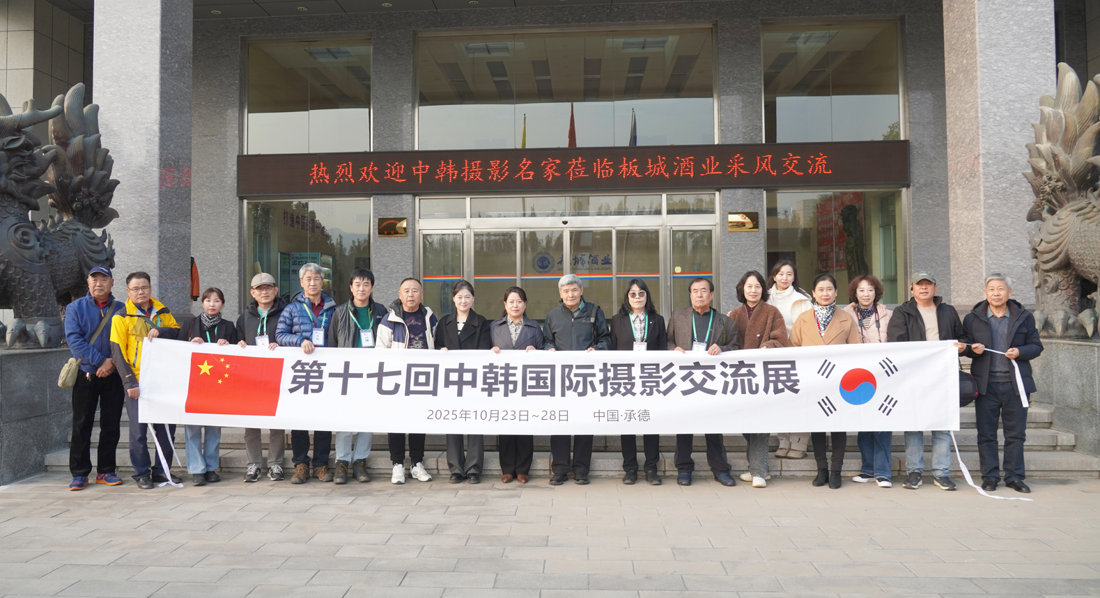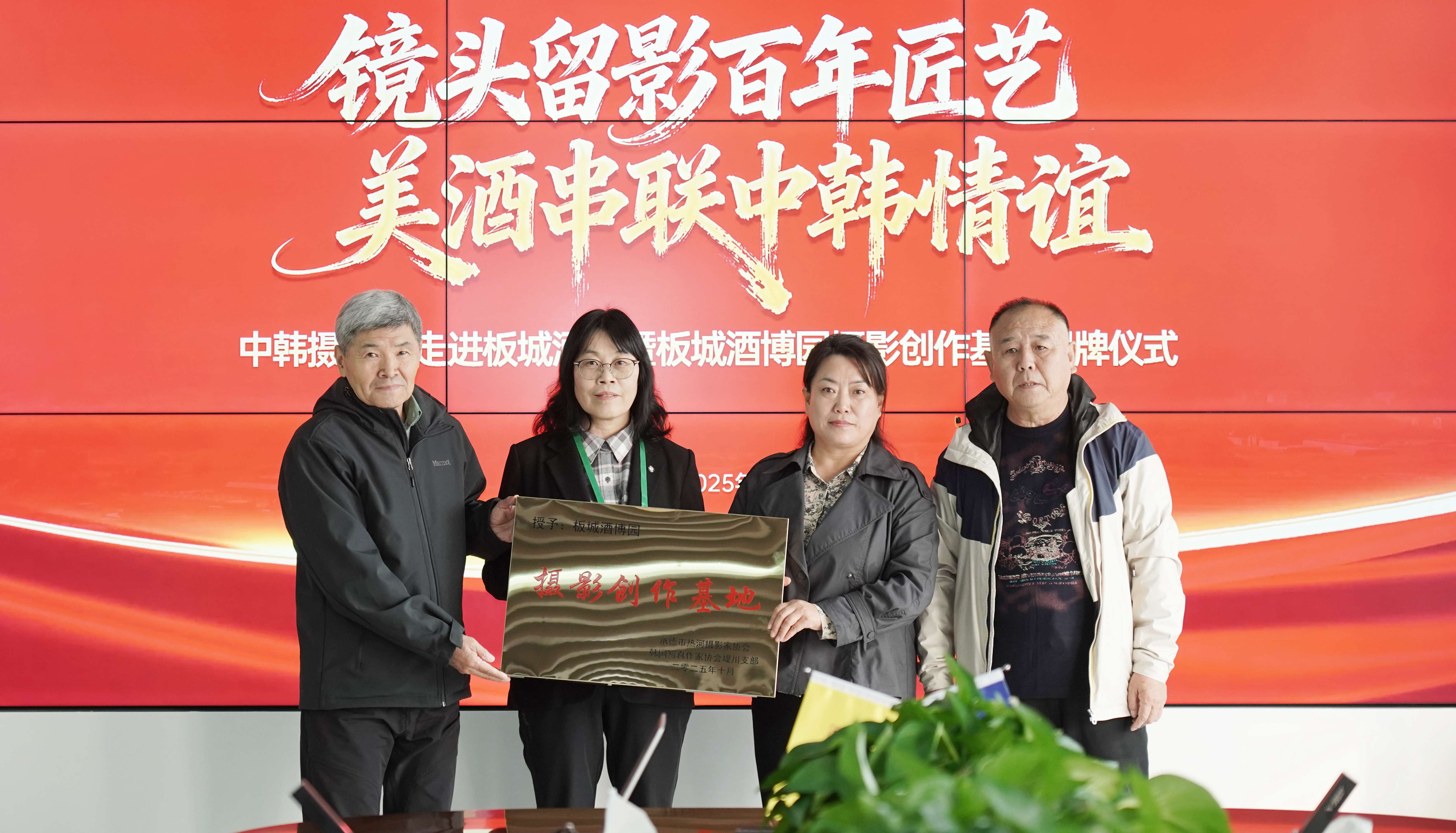 板城酒業(yè)行政總監(jiān)郝華杰講到:“中韓兩國地緣相近,人文交流源遠(yuǎn)流長。攝影作為一門跨越語言障礙的藝術(shù),是連接心靈、增進(jìn)理解的橋梁。此次中韓攝影家交流活動,不僅是一次藝術(shù)的盛會,更是一次友誼的深化。板城酒業(yè)被授予'板城酒博園攝影創(chuàng)作基地'的殊榮,我們倍感榮幸與自豪。這塊牌匾,是對板城酒業(yè)歷史底蘊(yùn)與文化價值的肯定。同時,我們也借這塊牌匾發(fā)出一份鄭重的邀請,邀請各位藝術(shù)家,將板城酒業(yè)當(dāng)作一個可以作品拍攝、自由探索的藝術(shù)創(chuàng)作基地。”