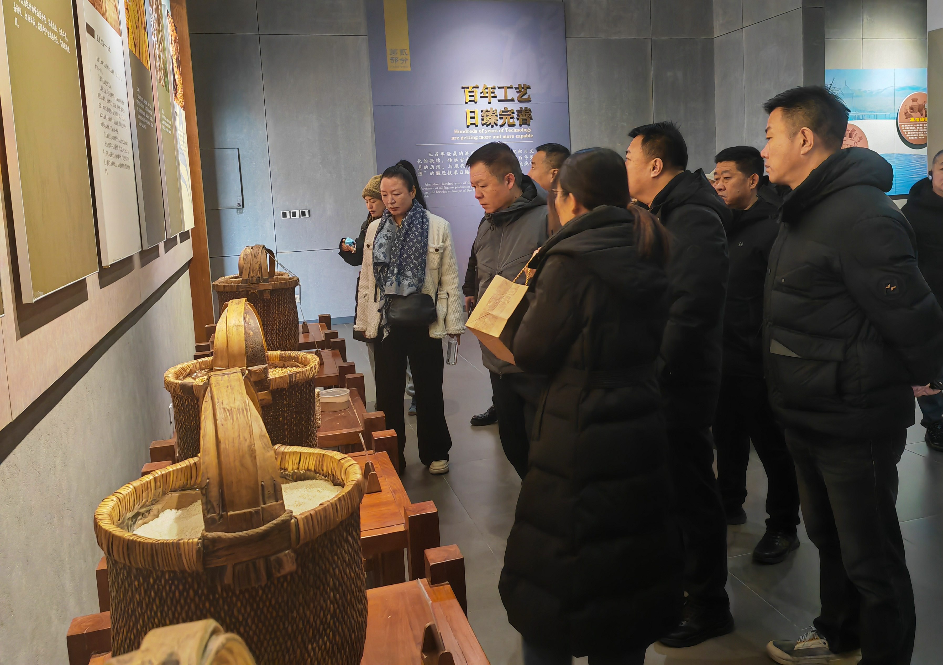 在板城酒業(yè)講解員的引領(lǐng)下,聶樹國會長一行首先參觀了板城燒鍋酒博物館。館內(nèi)陳列的原承德境內(nèi)出土的金代銅燒鍋、清代嘉慶皇帝御賜的《御制味余書室全集定本》等實物展品,揭示了承德境內(nèi)八百年的銅燒鍋釀酒史,更詳細(xì)闡述了板城燒鍋酒三百余年的國家非遺老五甑釀造歷史與文化傳承。